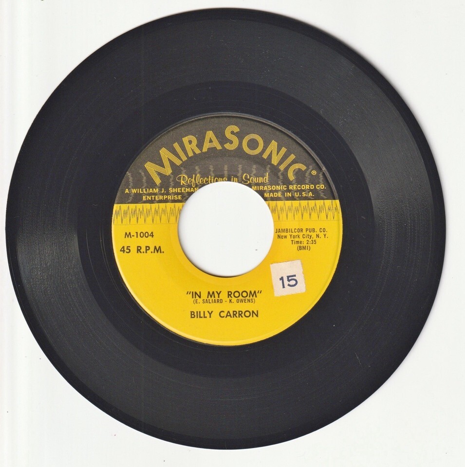 - Billy Carron DOOWOP - 45 7" Vinyl - Unemployed / In My Room Mirasonic 1004 VG+