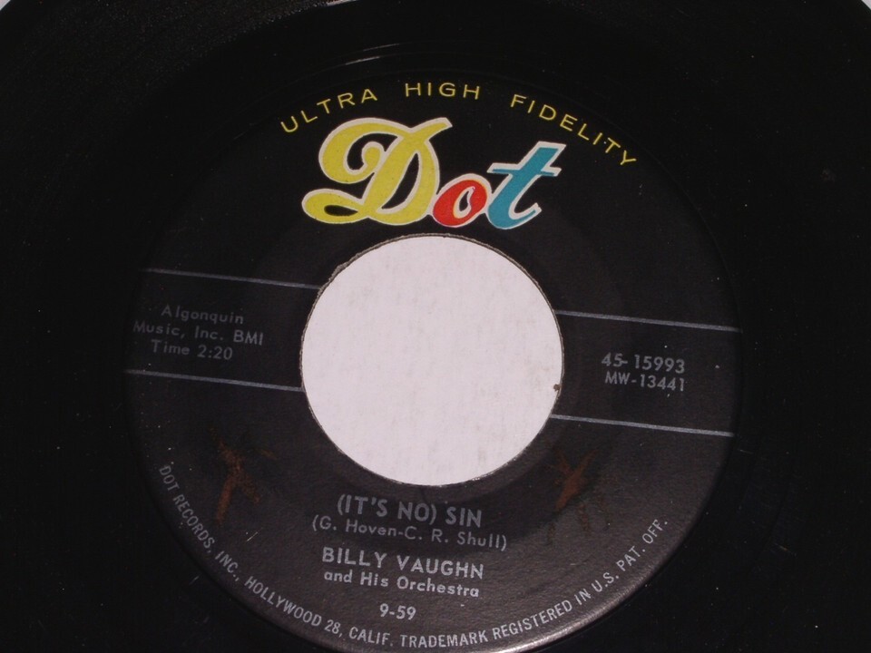 - Billy Vaughn After Hours It's No Sin 45 Rpm Record Dot 15993 VG++/NM