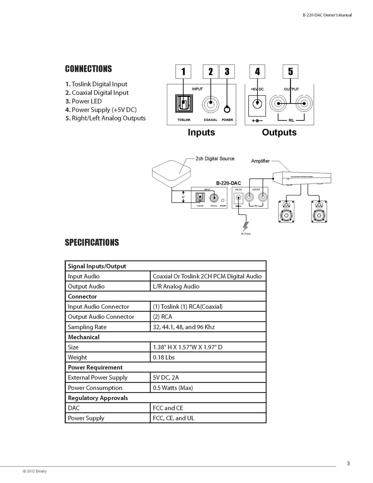 - Binary B-220-DAC Digital to Analog Audio Converter Optical Or Coaxial