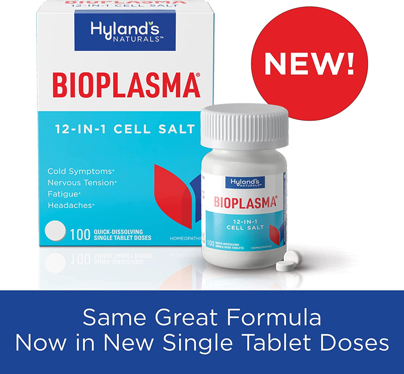 Hyland's Bioplasma Tablets, Natural Combination of Cell Salts Vital to Cellular Function, 100 Count. Provides daily supply of each cell salt to bring balance to overall cell function. Made with natural active ingredients, our products contain no artificial flavors or sugars, dyes or parabens. With a state-of-the-art, FDA regulated and cGMP compliant facility, our top-selling products are sold in more than 15 countries and can be found in every major retailer in the United This product works to stimulate the body?s own natural healing process. All of Hyland's products are safe, effective and completely free of aspirin, acetaminophen or ibuprofen and have no contraindications with other medications. Always read and follow the label directions when using Hyland's products.