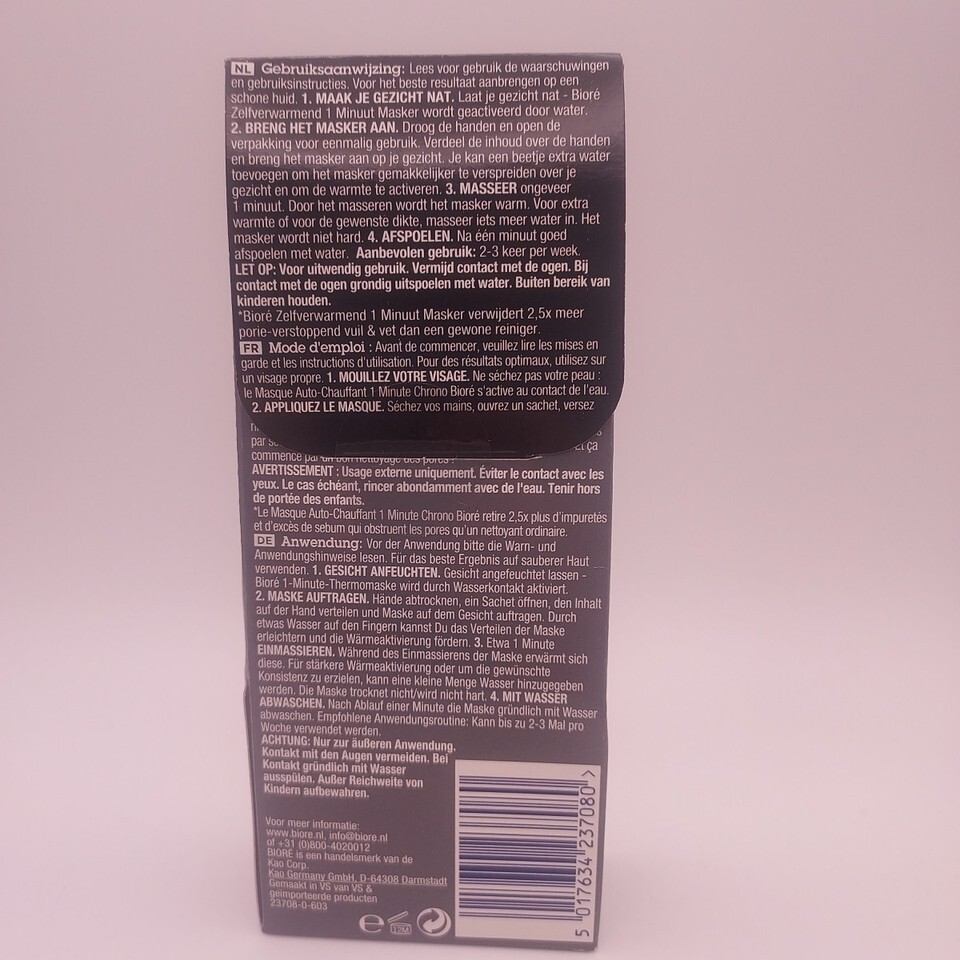 - Biore Charcoal Self Heating 1 Minute Wash Off Mask 0.25oz 4 Count German Edition