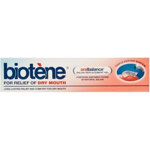 Biotene Oral Balance Dry Mouth Gel is a long-lasting treatment for a range of dry mouth conditions. Each application of Biotene Oral Balance Dry Mouth Gel keeps your mouth feeling moist and comfortable for up to 5 hours at a time, day and night. The patented enzyme formulation supplements the mouth's natural antibact. defence system which helps to neutralise odours and unpleasant tastes. Biotene Oral Balance Dry Mouth Gel moisturises the mouth and thus helps those who have a difficulty in swallowing due to a dry mouth. Biotene Oral Balance Dry Mouth Gel provides long-lasting relief and has a refreshing taste and is also sugar free.