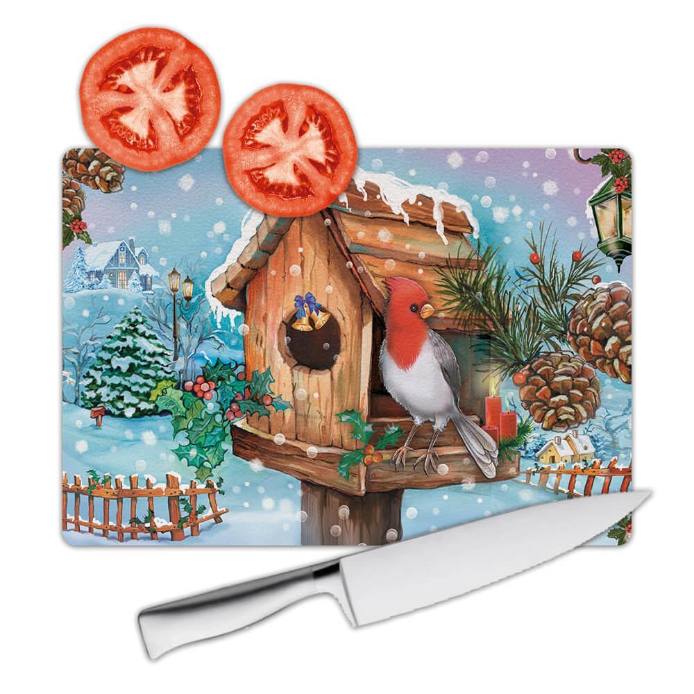 - Bird House Cardinal Snow : Gift Cutting Board Christmas Bird Grieving Lost Loved