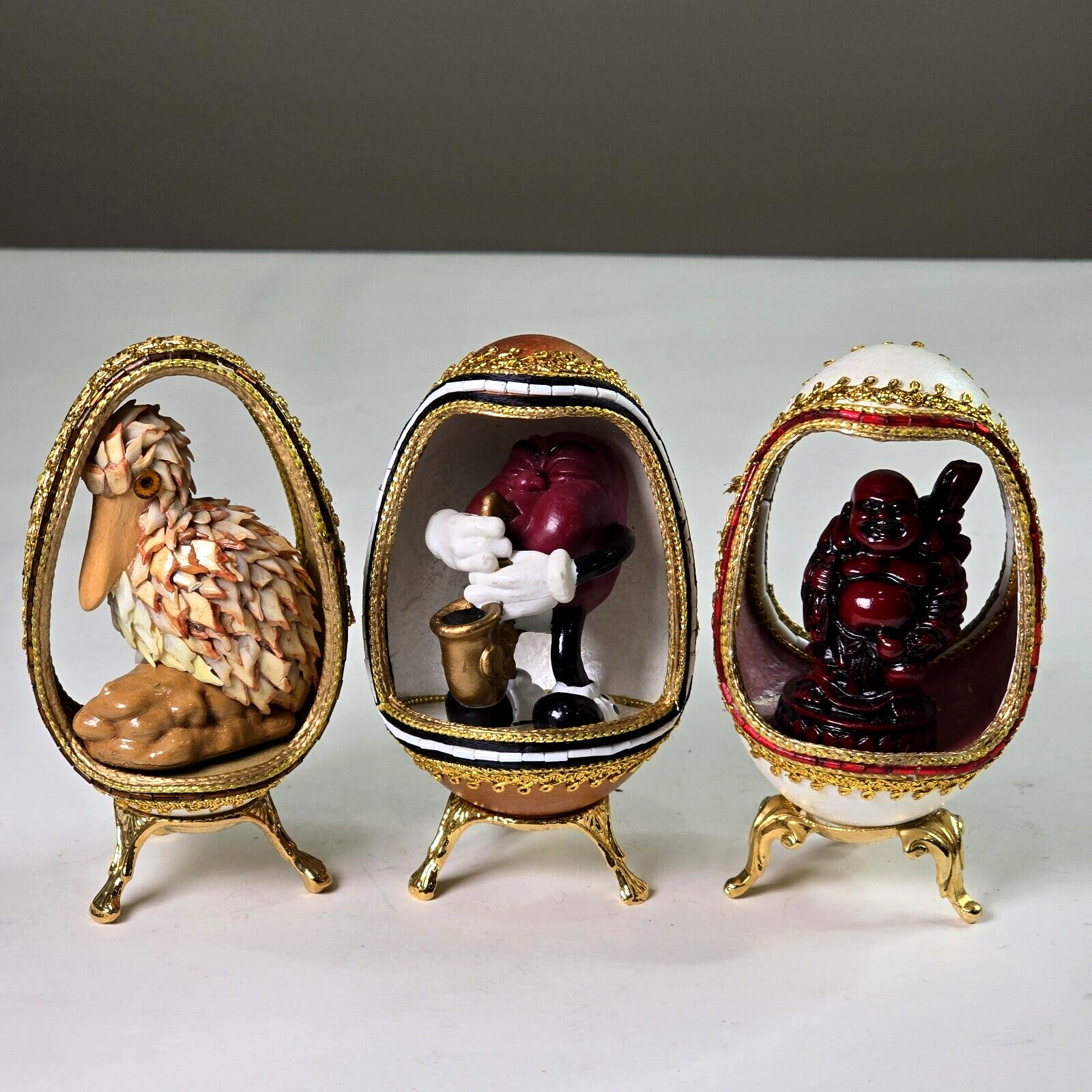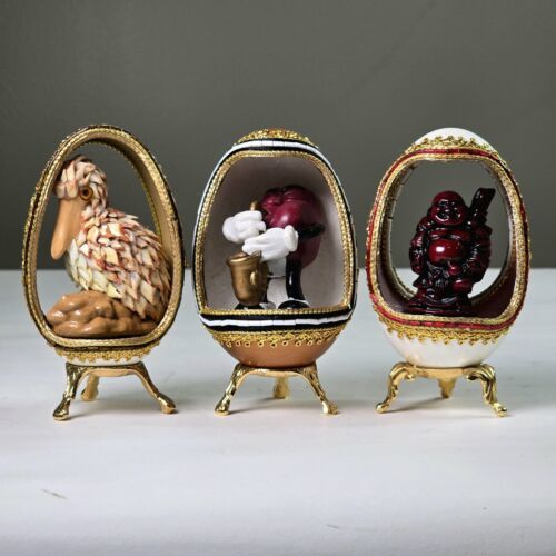 - Bizarre Egg Gift 80s Décor 3 Hollow With Figurines California Raisin Pelican 4in