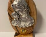 You are purchasing a beautiful medium pewter image of Our Blessed Mother with Child, set on wood. It includes stones from Bethlehem.These were brought back from Bethlehem.