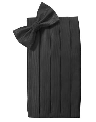 - Black 100% Silk Faille Cummerbund and Pre Tied Bow Set