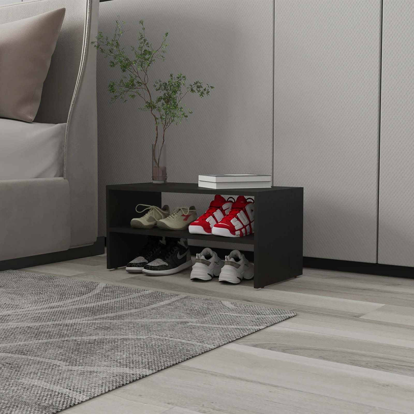 - Black 2-Shelf Shoe Rack Organizer - Compact Storage Solution