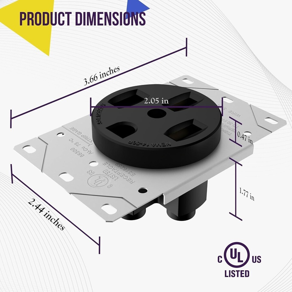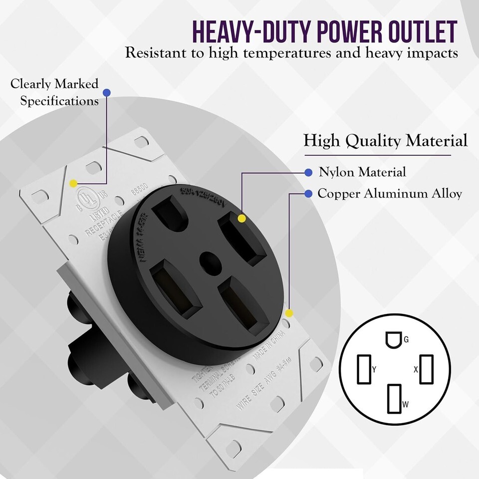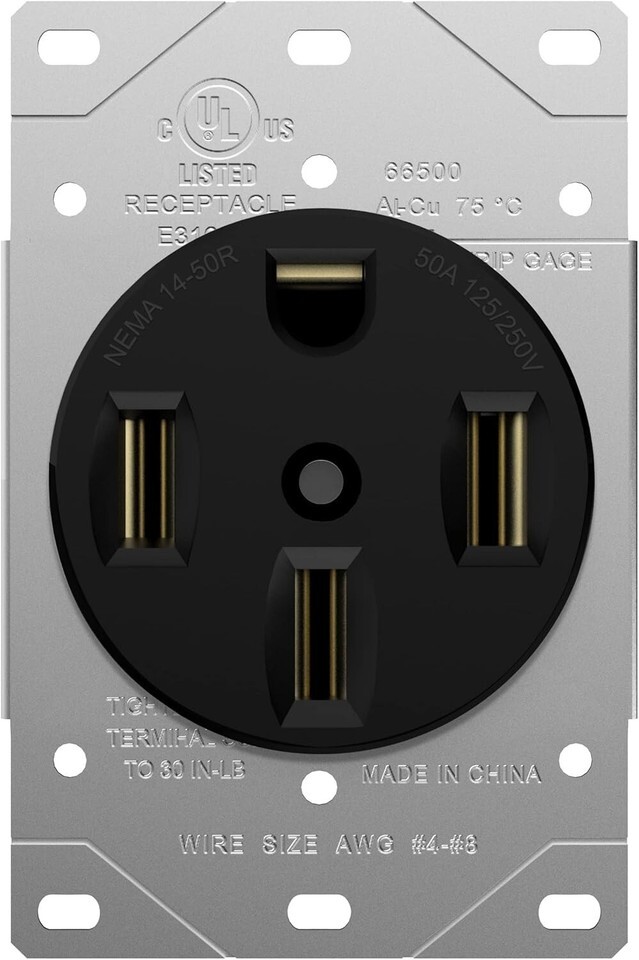 - Black 50 Amp NEMA 14-50R Receptacle for RVs & Electric Vehicles, Easy Setup