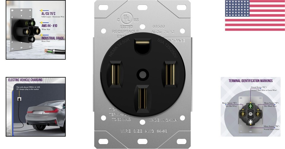 Make your installations as effortless as possible?this NEMA 14-50R receptacle is tailored for easy setup, with terminals clearly marked for swift identification and wiring. Whether you?re powering your RV, electric vehicle, or any large electrical appliance, this receptacle provides safe and reliable connectivity.