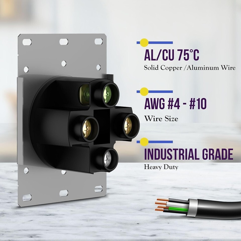 Wiring: Accepts 10, 8, 6, and 4 gauge Copper Wires (AWG); requires a neutral wire for effective 250V applications.