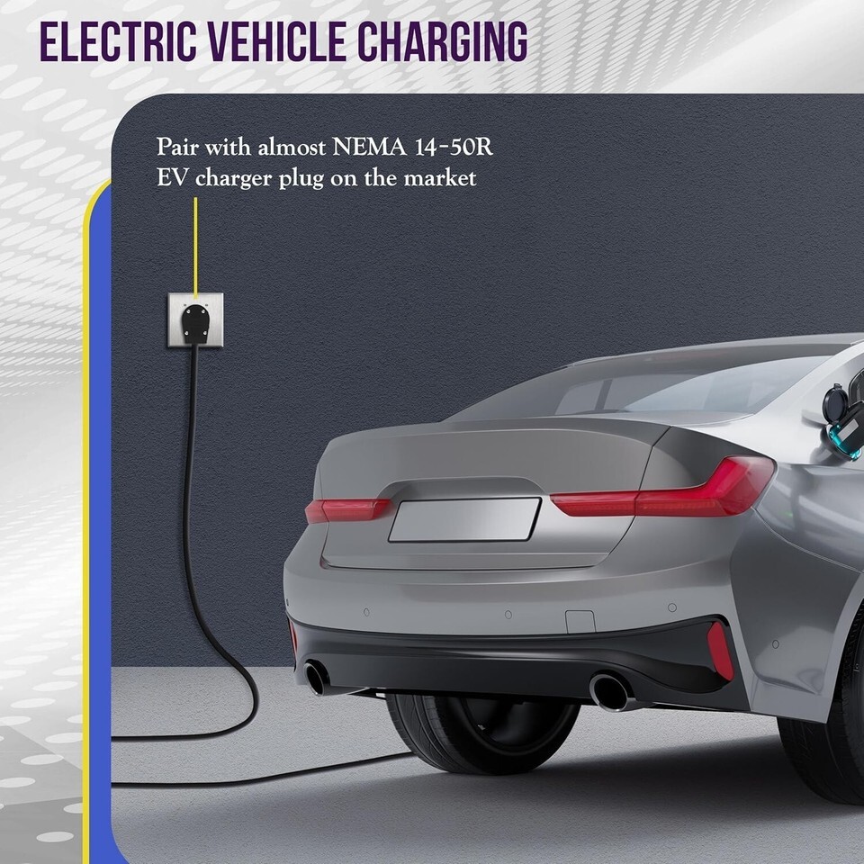 NEMA 14-50R Compatibility: Ensures seamless connectivity with electric vehicles, RVs, ranges, welders, and more.