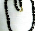 Black Acrylic Beaded Square and Rectangle Shapes Goldtone Spacers 19" Necklace