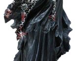 ? Experience the haunting presence of "The Boogeyman" Black Death Grim Reaper. This intricately crafted piece captures the essence of fear and finality, featuring the Grim Reaper adorned with chains and carved knuckles that read 'Game over'. The dark and detailed design adds a macabre touch to your space. Perfect for collectors of gothic and morbid aesthetics, this figurine stands as a foreboding symbol of the end. Let "The Boogeyman" figurine become a stark reminder of our mortality.