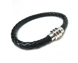 This adjustable, 'one size fits all' bracelet is made from 3/16" diameter braided black leather cord with a metal magnetic clasp.