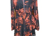 Black & Burnt Orange Floral Mesh V-Neck Dress Halloween Fall Work Career Church