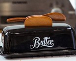 - Black Butter Dish with Lid and Knife Butter Tray Ceramic 7.9"L x 4.1"W x 2.2"H