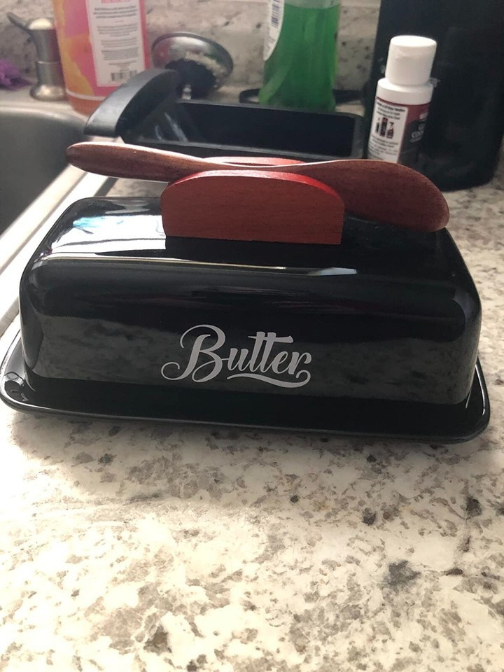 ?A UNIQUE GIFT?: This butter dish with lid and knife is a blend of nature and simplicity, with the word "Butter" in a beautiful font, it can match any kitchen style, making it perfect as a countertop decoration or as a gift, bringing elegance and well-being to you and your loved ones.