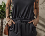 - Black Casual Tank Style Tie Waist Pocketed Jogger Jumpsuit