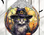 - Black Cat with Hat Stained Glass Christmas Ornament Holiday Decoration