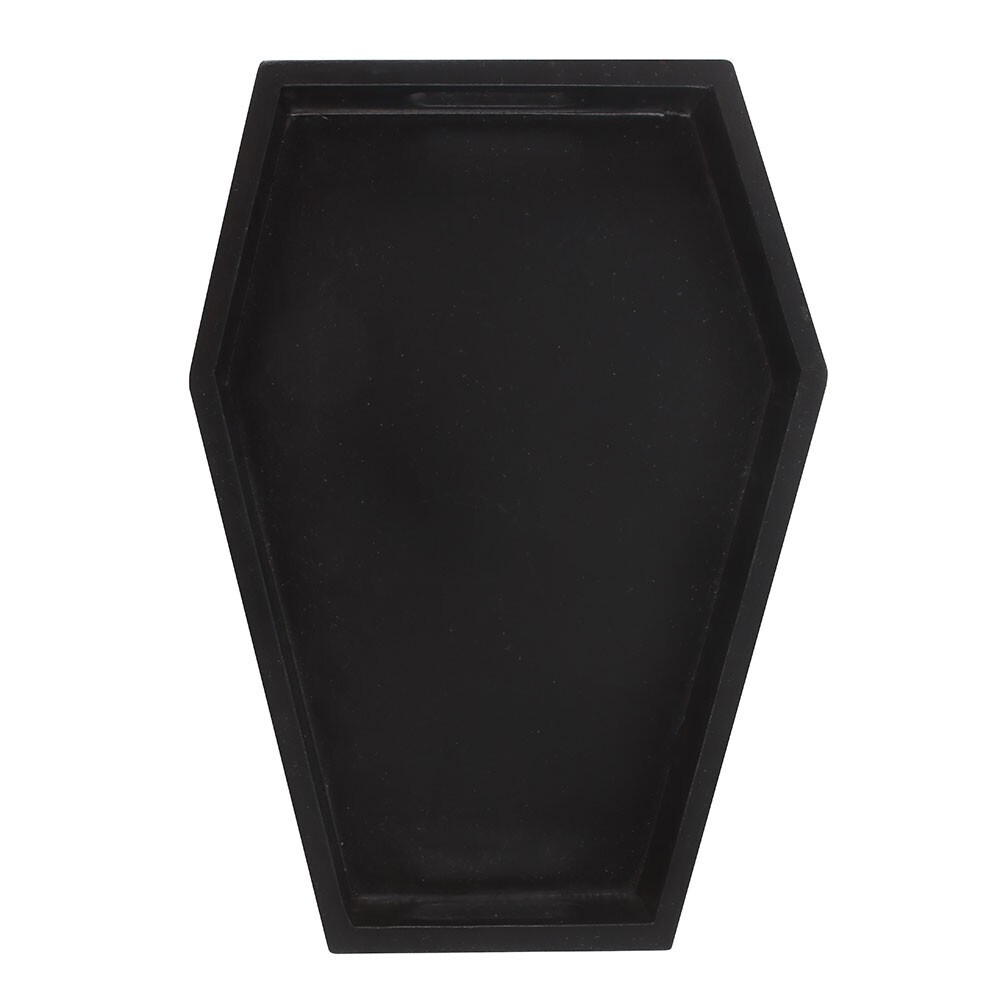 Serve up gothic vibes with this striking plain black MDF coffin-shaped tray. This stand-out piece is the perfect decorative accent for any spooky yet stylish home, instantly adding a dark aesthetic to your vanity or living space.