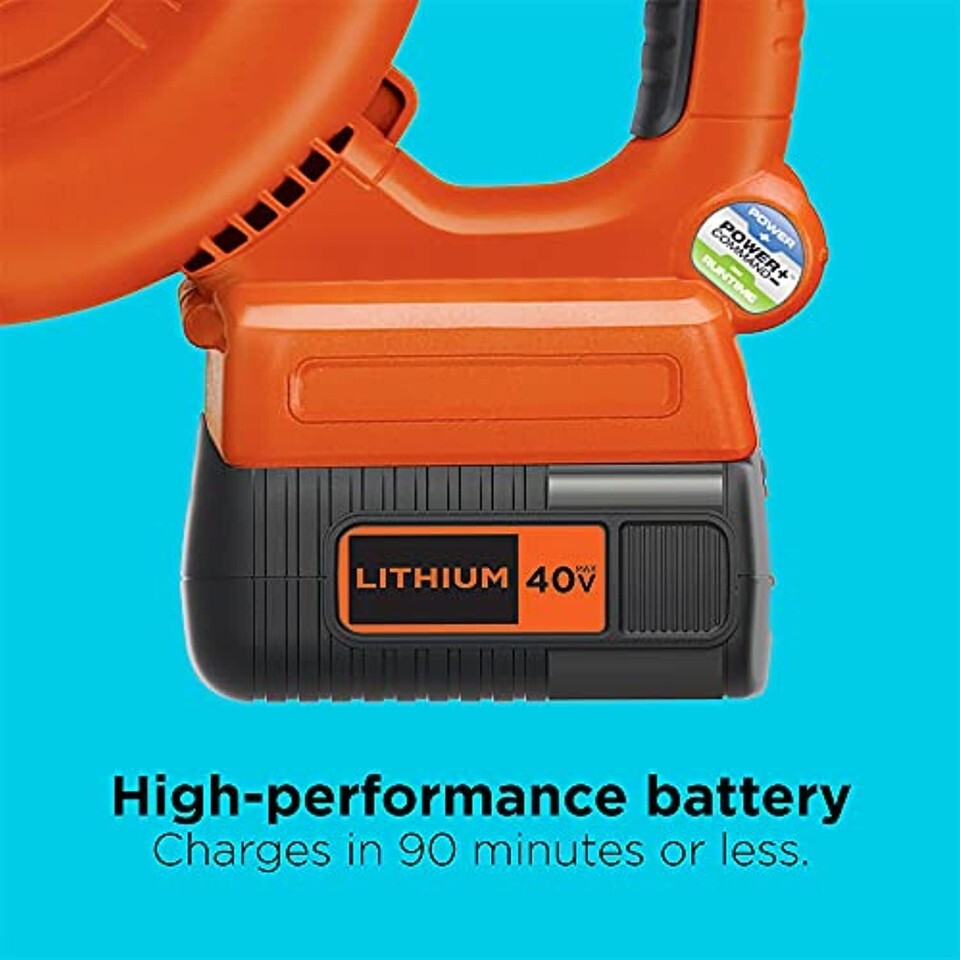 -- The lightweight, cordless LSW36 Sweeper. Power Command variable speed setting. Power up your yard cleanup with the cordless Black Decker 40-volt Lithium Sweeper (model LSW36), which eliminates the weight, noise and hassles of gas-powered equipment. It's powered by Black Decker's high-powered 40-volt lithium battery system, which offers power, excellent runtime, and the versatility to share batteries with other tools within the system. The Lithium AdvantageBlack Decker's 40-volt lithium-ion system offers numerous benefits over older battery technologies and gas options, notably the ability to put more power into a small and compact battery. Lithium batteries have a longer lifecycle than other types, and they also hold their charge longer when taken off the charger. This means that once charged, a lithium battery is always ready to use. The included Energy Star-rated fast charger fully recharges the battery in about 1 hour.Clears All Types of DebrisIdeal for hard surfaces like patios, decks, walkways, driveways, and garages, the Sweeper has an efficient design and a 120-mph air speed to make quick work of debris. It features Power Command controls for adjusting speed for maximum run-time or maximum power. The blow tube has a built-in scraper that enables the Sweeper to loosen matted leaves and stuck-on debris.Lightweight for Comfortable, All-Day UseWeighing in at just 4.7 pounds, this blower is light enough for anyone to use for extended periods. And it features a comfortable soft grip handle that's large enough for use with gloves. Low Noise LevelsThe Sweeper's electric motor greatly reduces the roar that's common with gasoline blowers to protect your hearing and reducing noise pollution. It's rated at 66 dBA.What's in the BoxLSW36 cordless Sweeper; LBX36 40-volt lithium-ion battery; LCS36 40-volt fast charger; blow tube; operating instructionsLSW36 Lithium Sweeper Key Features:Clears debris from hard surfaces like patios, decks, walkways, driveways and garages40-volt lithium-ion battery provides longer runtime and longer battery life year after yearFast charger recharges 40-volt battery in about 1 hourPower Command controls speed for maximum run-time or maximum powerBlow tube with built-in scraper allows users to loosen matted leaves and stuck-on debrisSoft grip handle; lightweight at just 4.7 pounds Ideal for blowing debris from hard surfaces. Clears patios, decks, walkways, driveways and garages. Low-noise design allows for quiet operation. Product Description The BLACK+DECKER LSW36 40V Lithium Ion Sweeper has an efficient design that easily clears debris from hard surfaces like patios, decks, walkways, driveways and garages. Its soft grip handle provides added comfort during use. Its blow tube with built-in scraper allows users to loosen matted leaves and stuck-on debris. Air Speed: 120 mph; Decibels: 66 dBA; Included Components: LSW36 Cordless Sweeper/Vacuum, (1) LBX1540 40V MAX* Lithium Ion Battery, (1) LCS36 Fast Charger, (1) Blow Tube; Power Source: 40V MAX* Lithium Ion Battery; Type: Hard Surface Sweeper