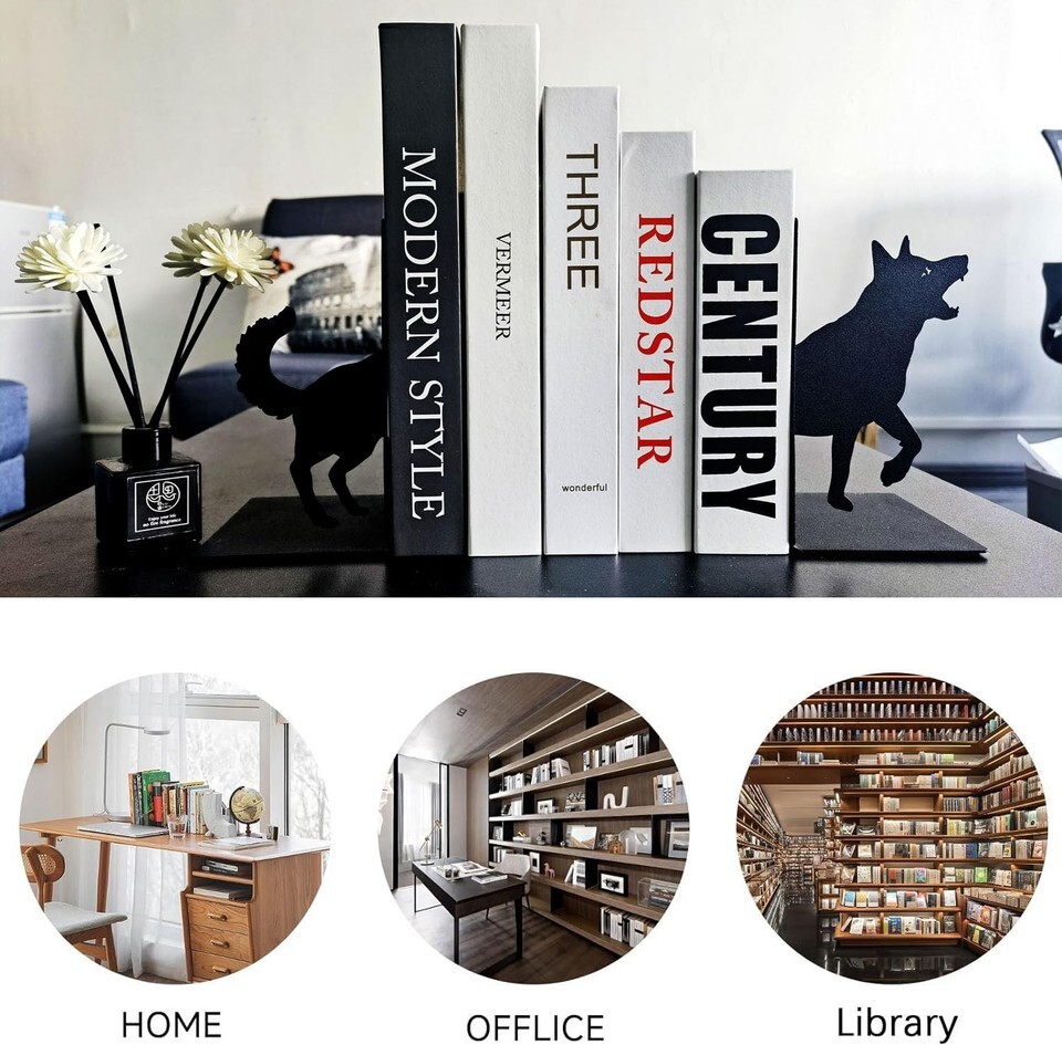 PRACTICAL BOOKENDS - These book end surpport shelves are suitable for school, home, office, library, bookstore and more,keep all your books,CD,DVD and other items upright organized and beautifully on display, Unique set of bookends to add some charm to any room in the house. Bookends for shelves is a great way to display your books.