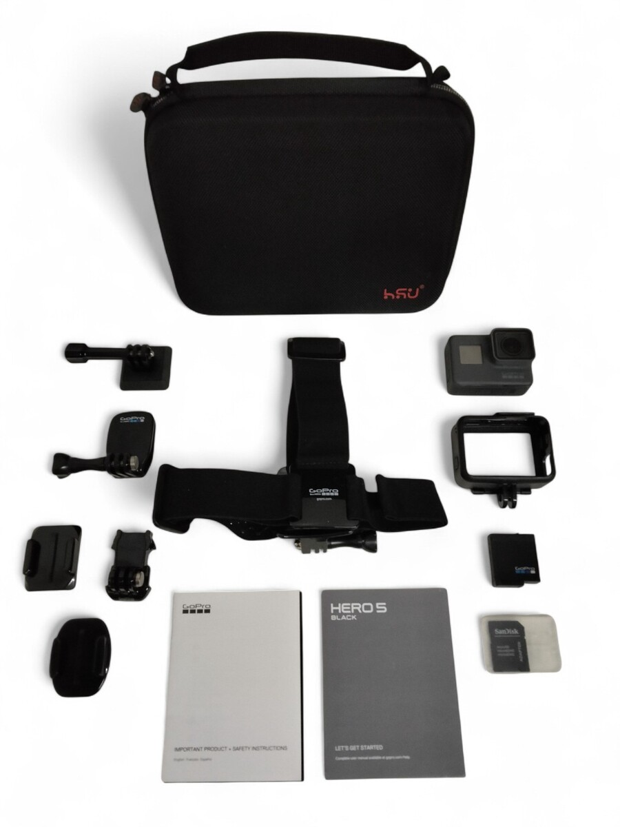- Black Go Pro Hero 5 Action Camera + Battery + Charger + HSU Case + Accessories