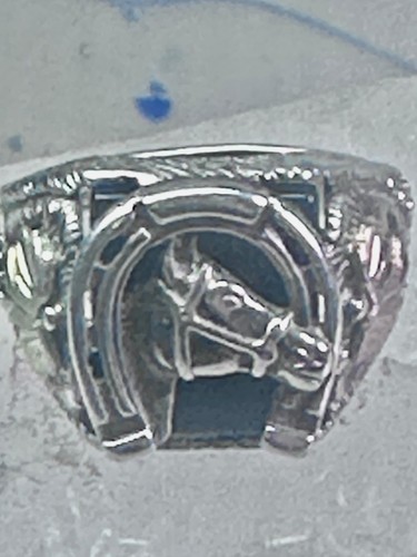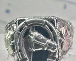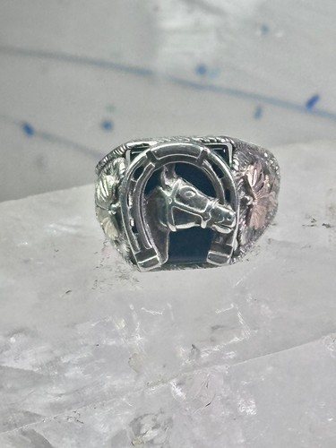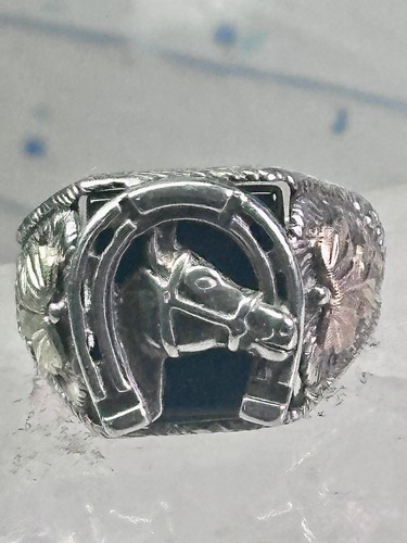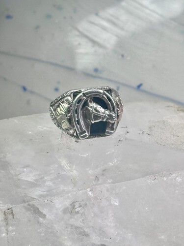- Black Hills Gold Ring horse horseshoe good luck onyx band size 10 cowboy sterlin