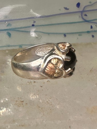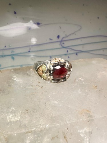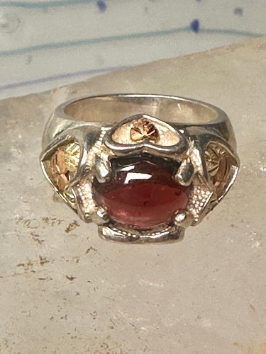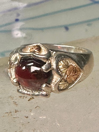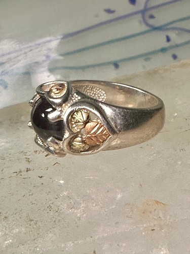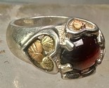 Black Hills Gold ring Art Garnet Heart leaves band size 5.75 pinky sterling silver women men
