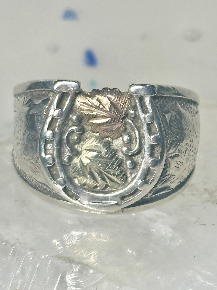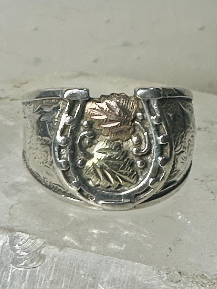- Black Hills Gold ring Horseshoe band size 11.25 sterling silver women men AS IS