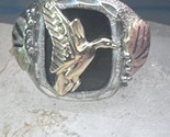 Black Hills Gold ring goose leaves bird onyx size 11.75 sterling silver women me