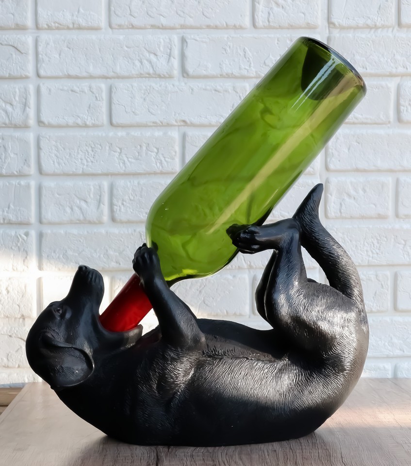 - Black Labrador Retriever Wine Bottle Holder Caddy Figurine Pet Canine Lovers
