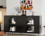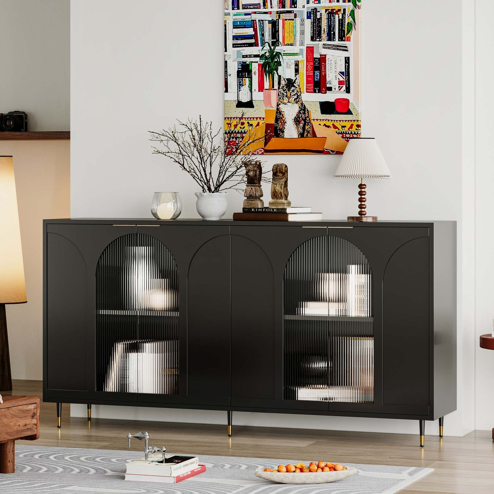 Accent Black Wooden Cabinet with 4 Glass Doors Sideboard Buffet Server Cabinet Storage Cabinet