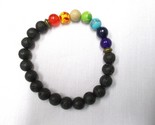 - BLACK LAVA & MULTI COLOR RAINBOW GEMSTONE BEADS STRETCH PRIDE STONE BRACELET