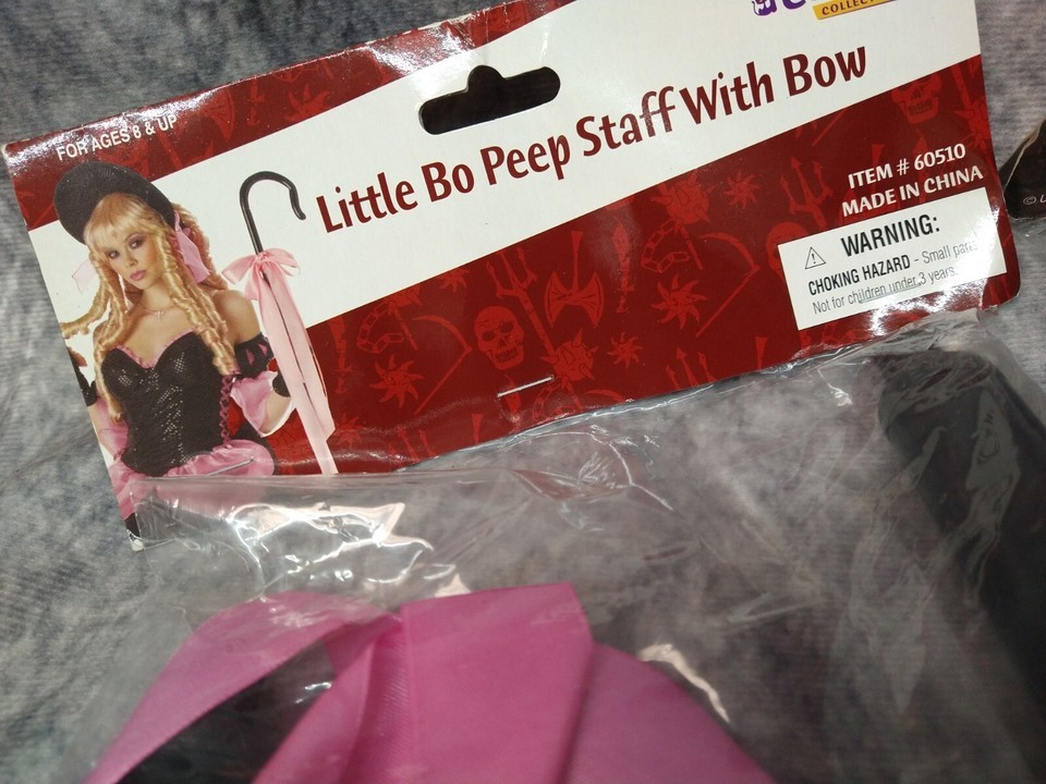 - Black Little Bo Peep Costume Crook Staff Hook Pink Ribbon Bow Goth Fairytale 68"