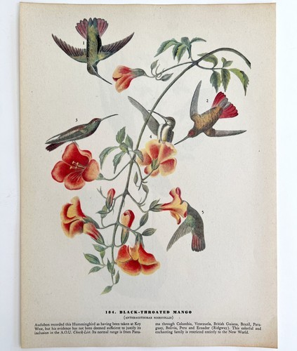 - Black Mango Hummingbird Bird 1946 Color Art Print John James Audubon DWV2G