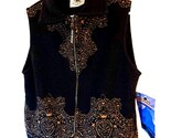 Black Mountain Women's Sweater Vest 100% Acrylic Floral Collared Full Zip S New