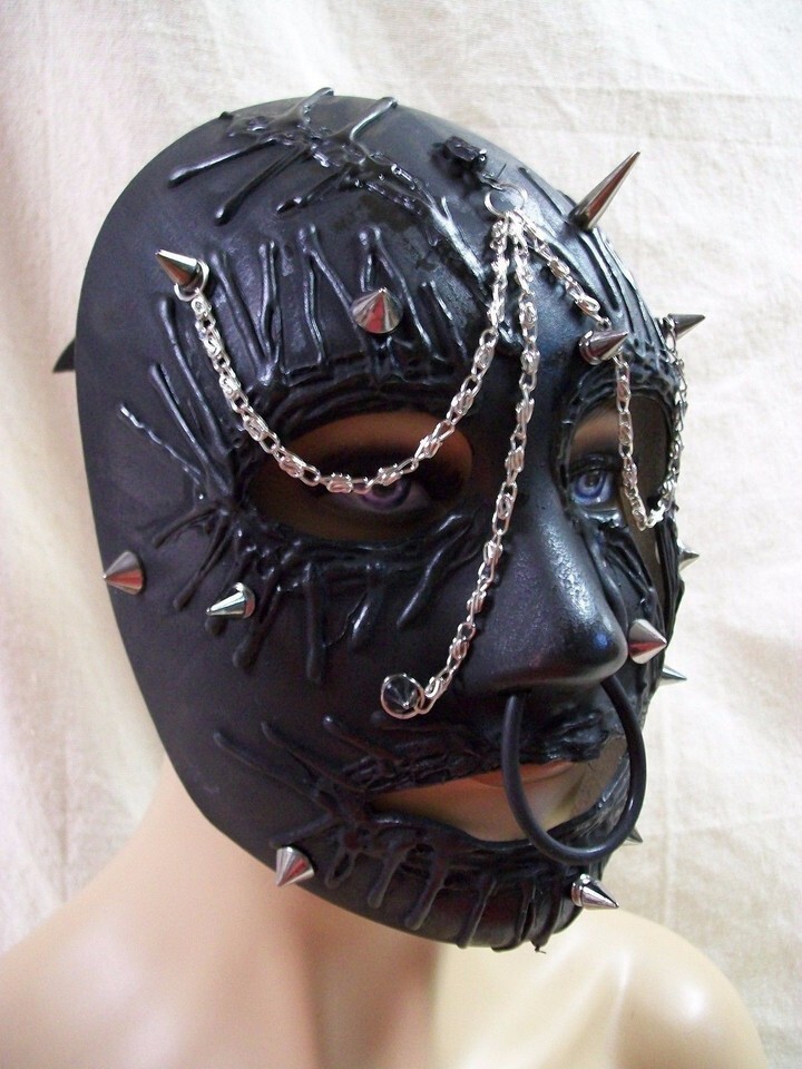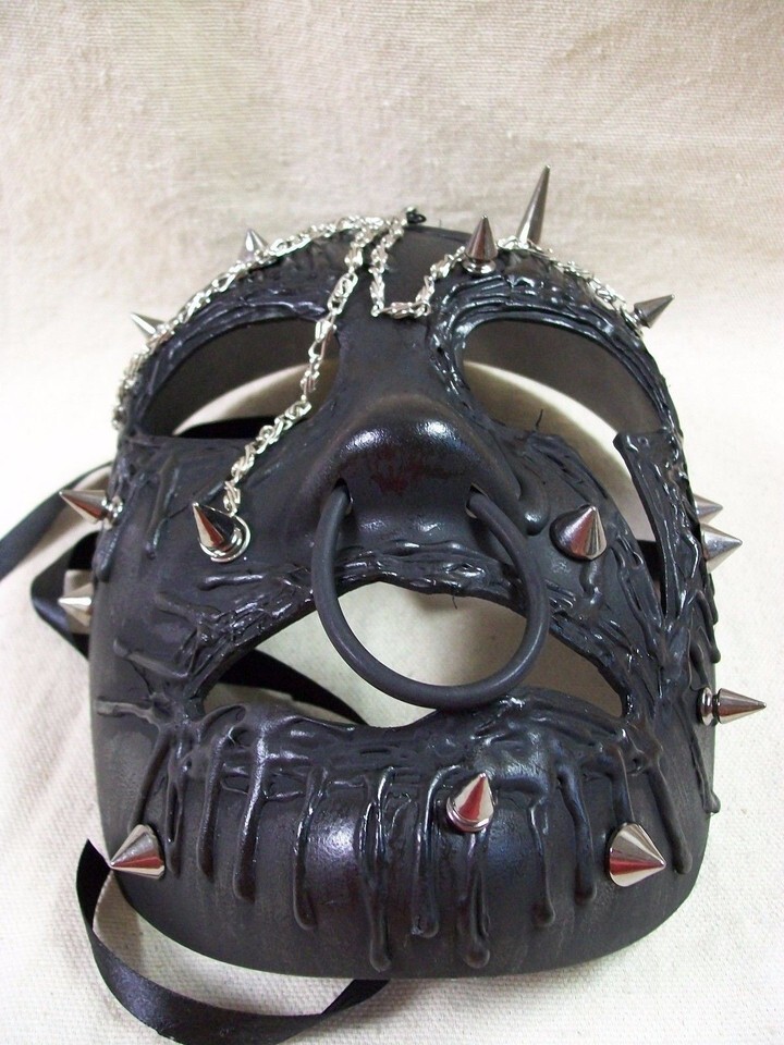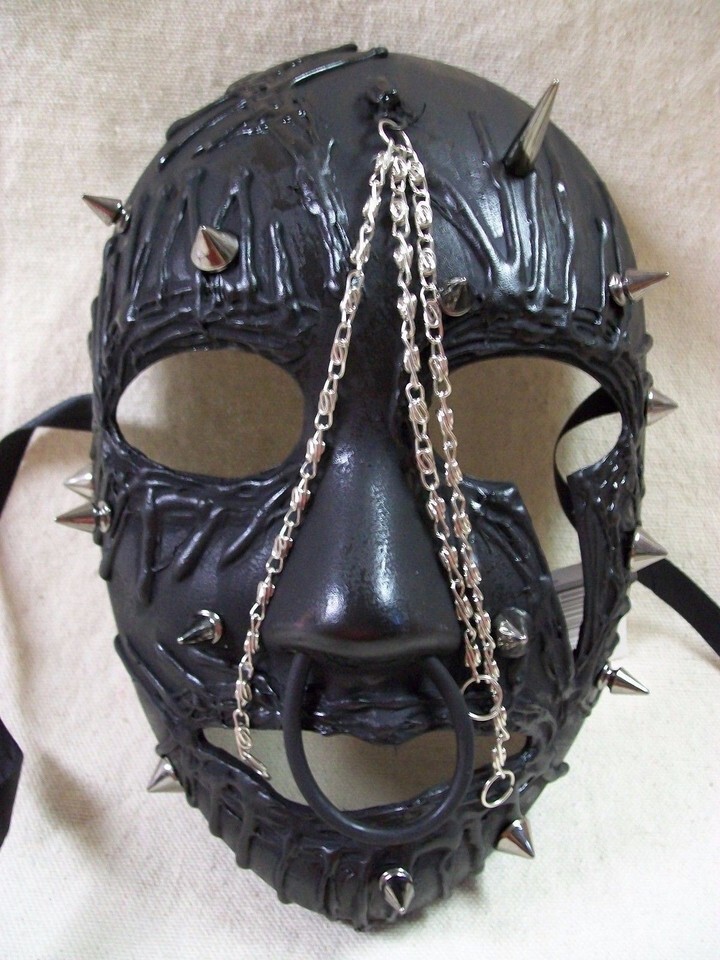 - Black Night of Darkness Mask Pierced Chains Spikes Melted Apocalyptic Warrior