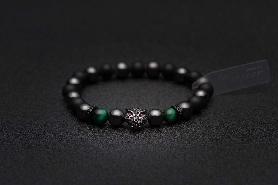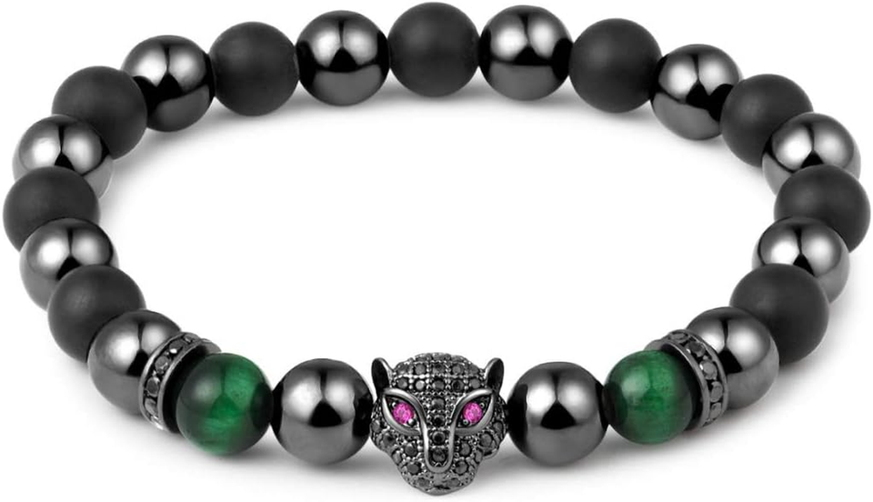 - Black Panther Charm Bracelet with Natural Stones & Magnetic Hematite