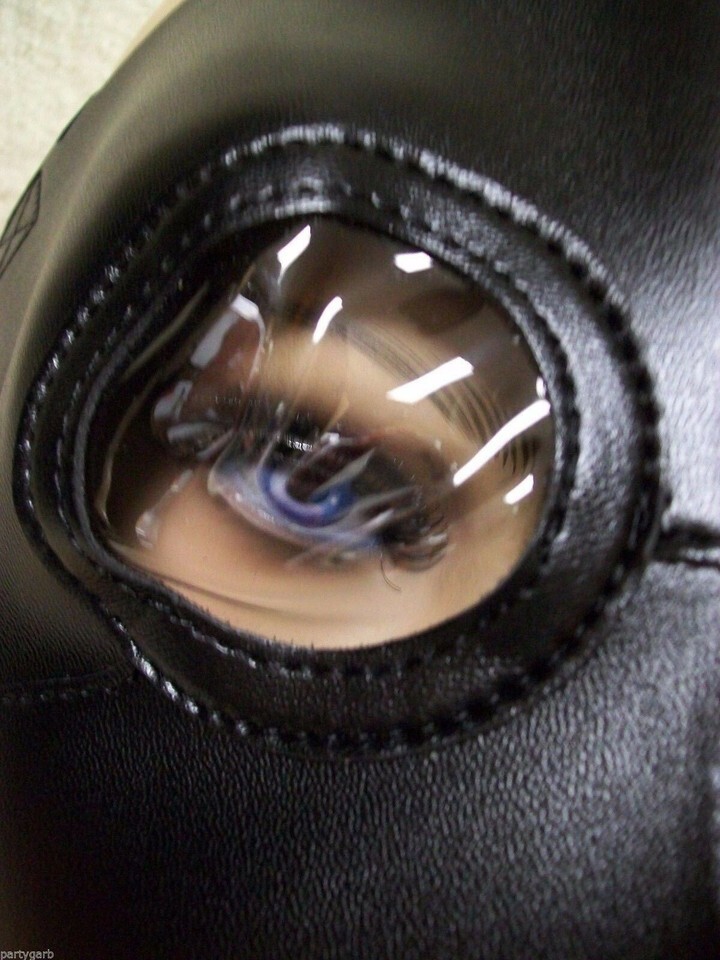 Plague Doctor Costume Mask. Black Faux Leather Look. Has clear plastic lens in eye holes. The plastic looks thick and has waves / wrinkles. Center of beak on the underneath has rows of small holes. May need to add some lightweight stuffing in the beak to maintain shape. Has a black elastic band in the back. Elastic Strap Does Not adjust. It can be pinned up if too loose. (Safety Pin not included) Tag says Weight 90-160 lbs, I think this may be a typo. Not sure how that applies to the mask. DOES NOT INCLUDE MANNEQUIN.