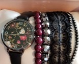 - Black ~ Quartz Watch ~ Flowered Face ~ 5-Piece Bracelet Set ~ Jewelry ~ NIB