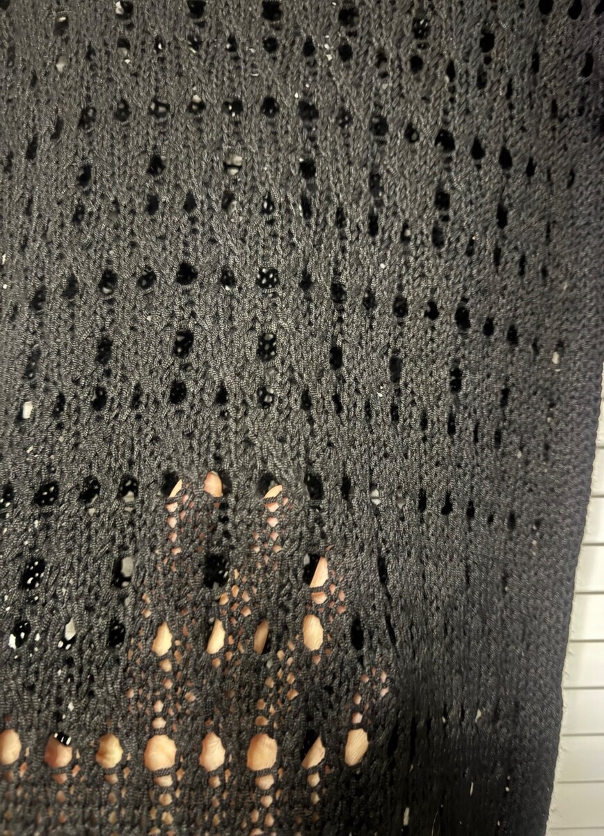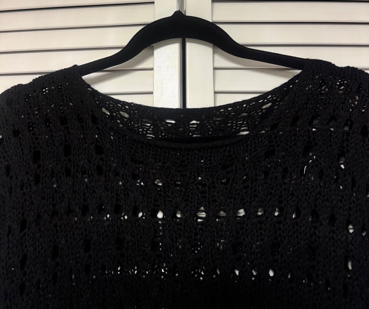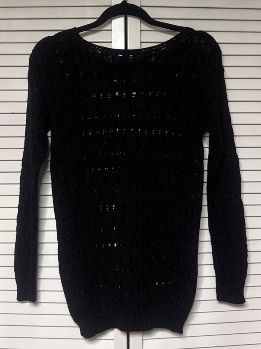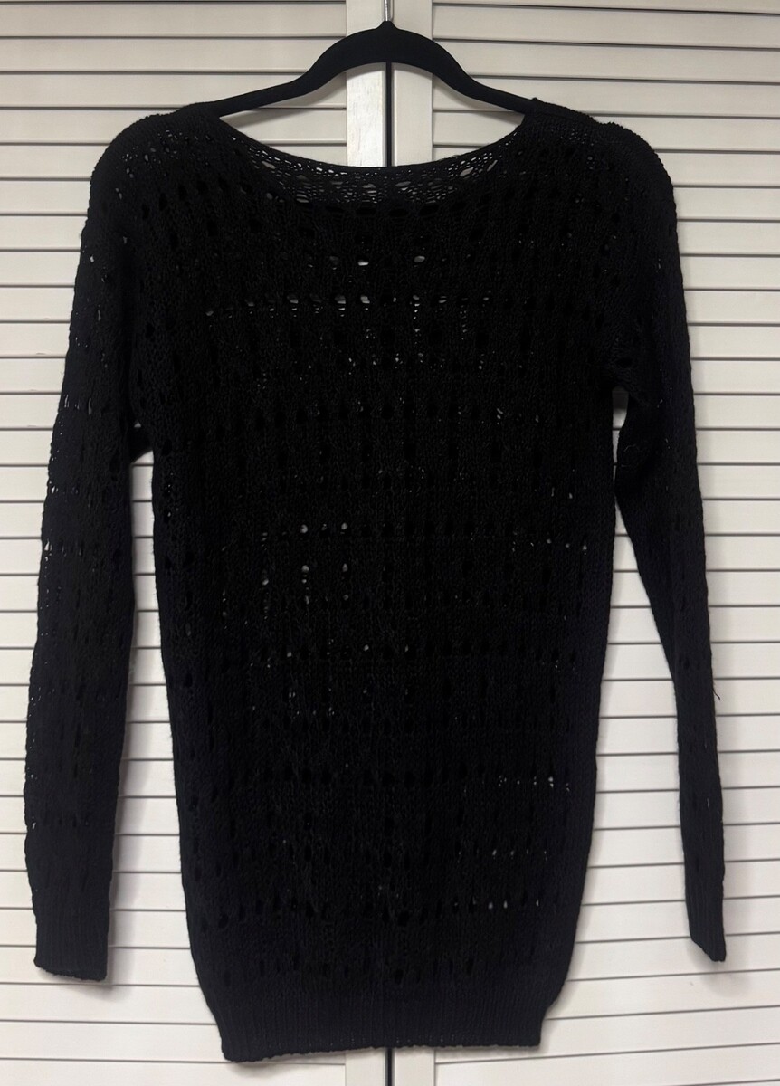 - Black Round Neck Knit Crochet Long Sleeve Sweater Top Size S/M 100% Cotton NWOT