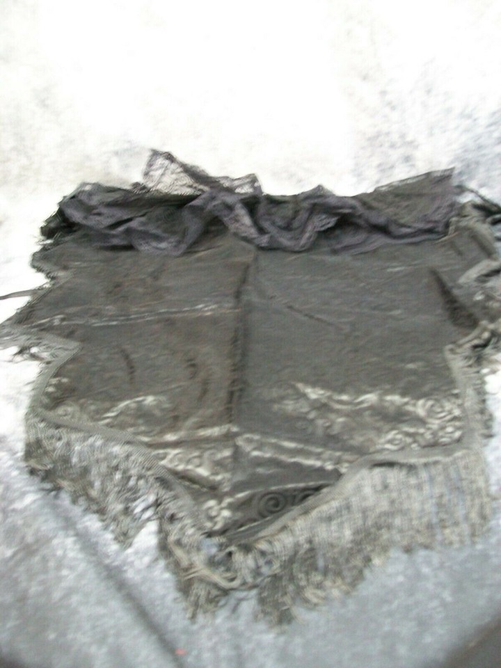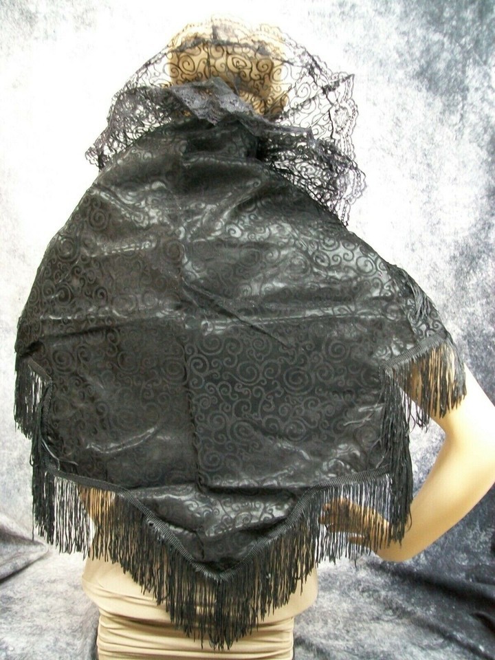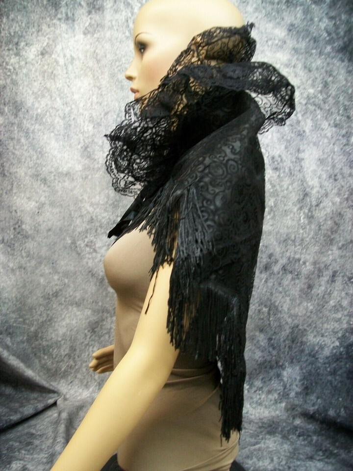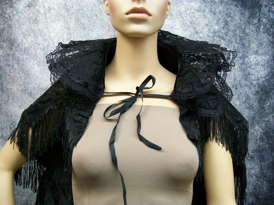 - Black Shawl w/ Lace & Fringe Cape Halloween Witch Gothic Vampire Mistress Madame
