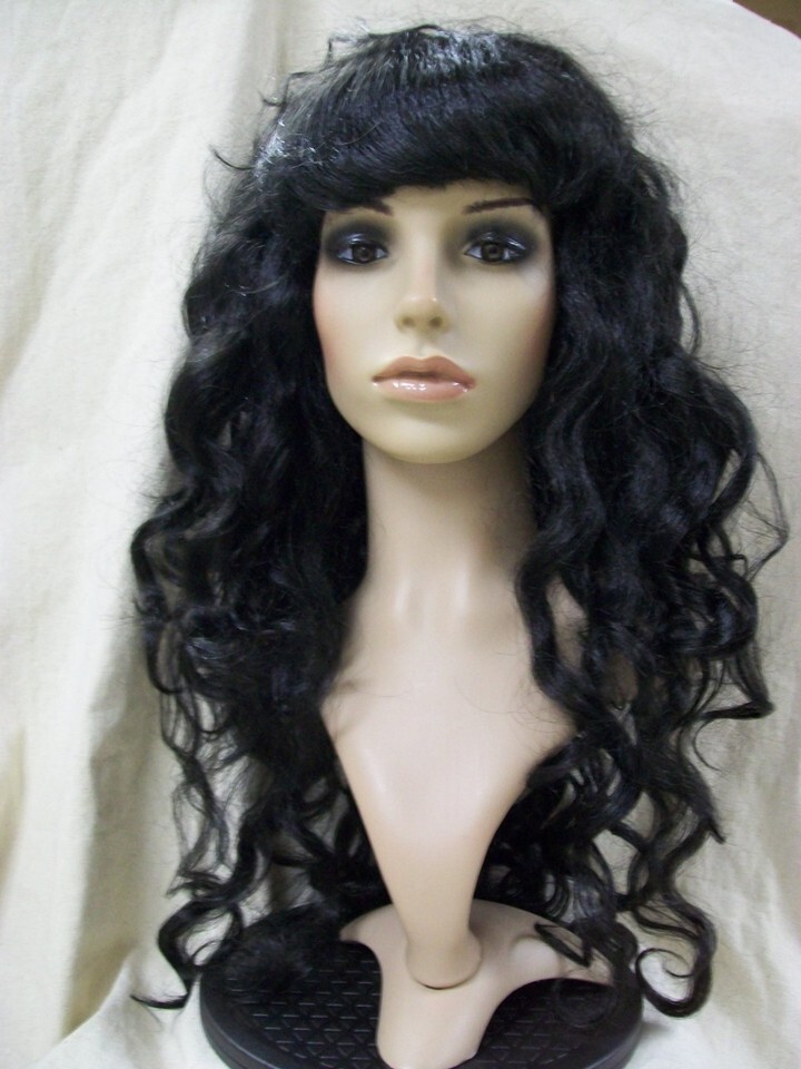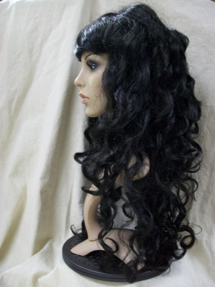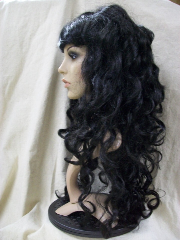 - Black Siren Wig w/ bangs Mermaid Goddess Vampire Queen Madame Darkness Sorceress