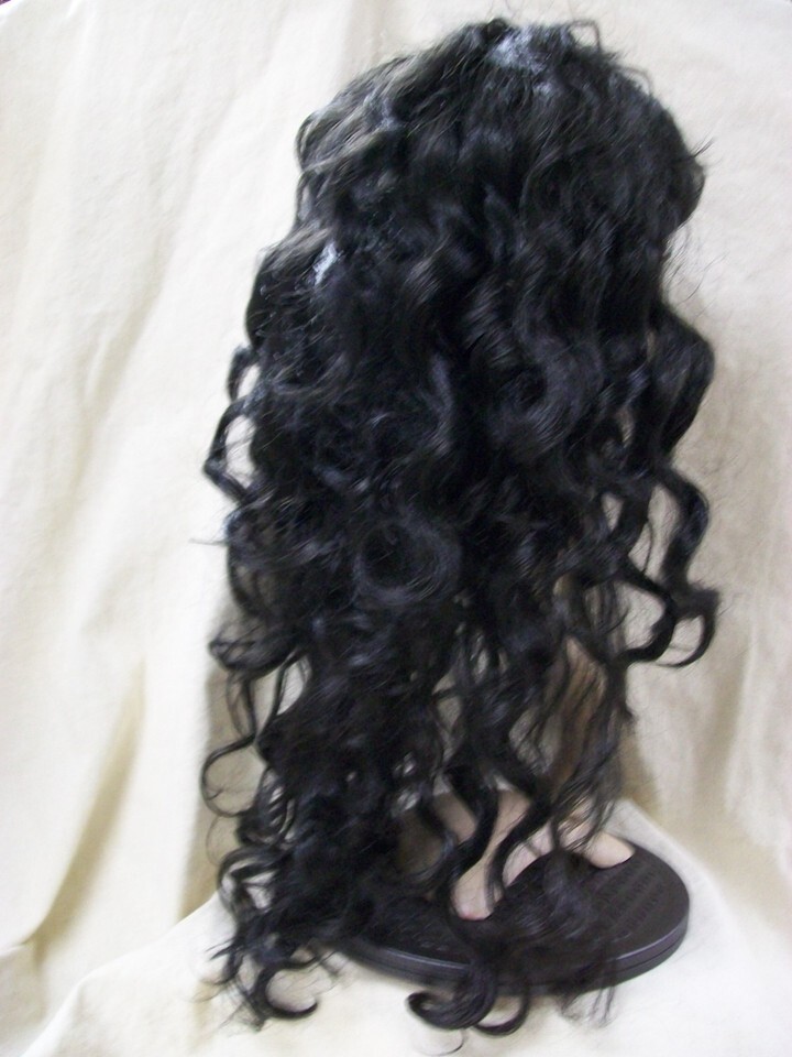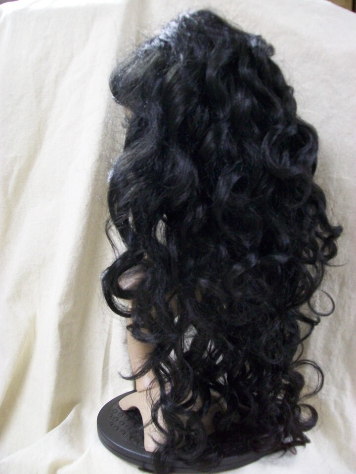 Black Siren Wig w/ bangs Mermaid Goddess Vampire Queen Madame Darkness Sorceress
