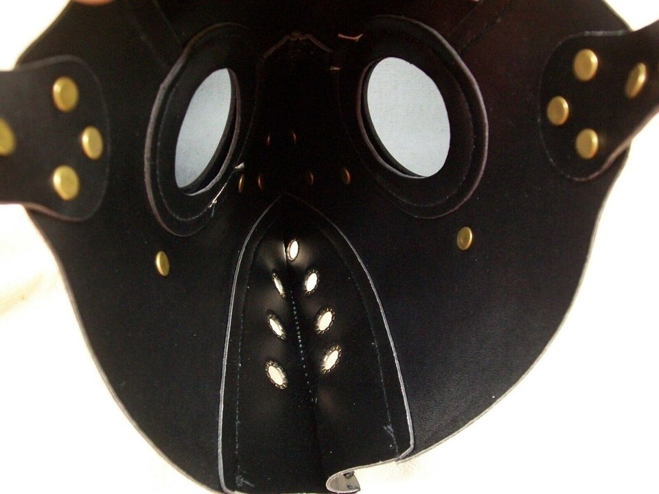 BLACK FAUX LEATHER STEAMPUNK PLAGUE DOCTOR COSTUME MASK