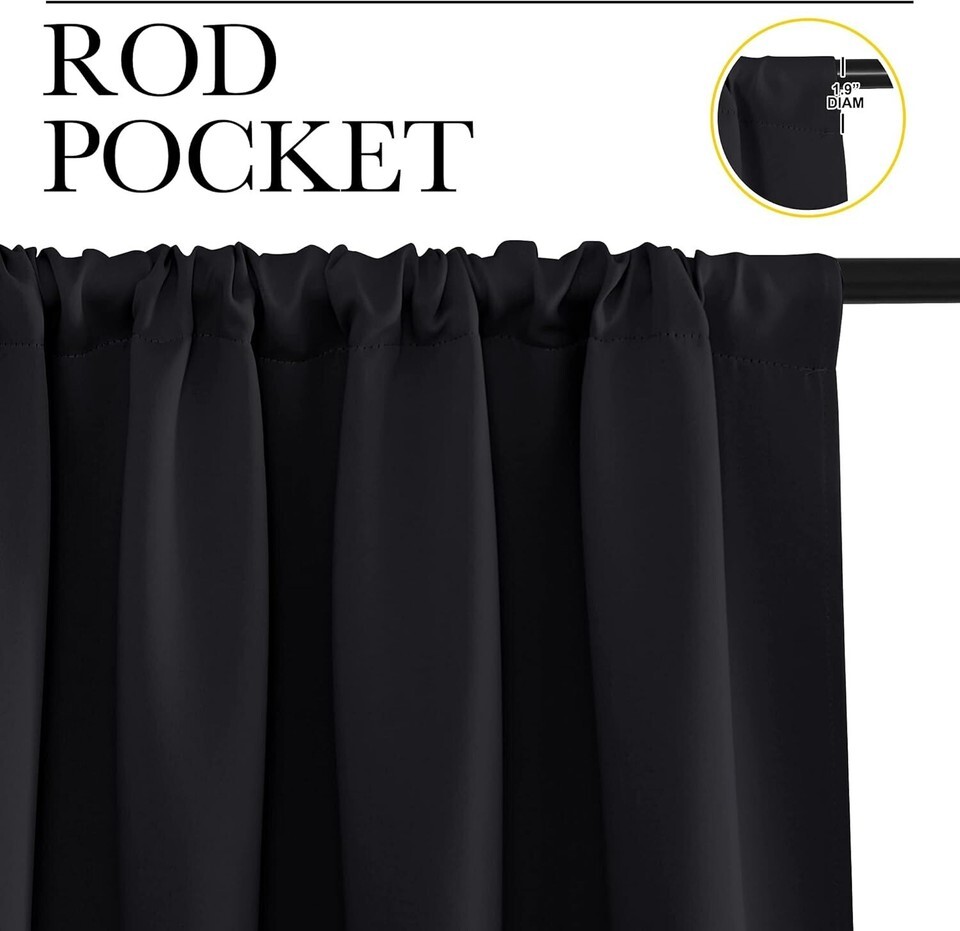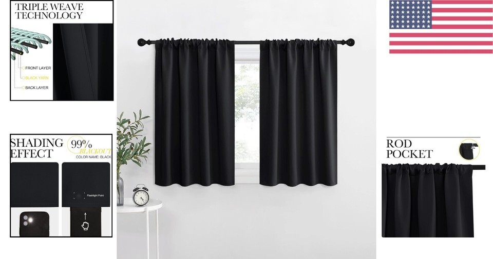 - Black Thermal Window Drapes - 34" W x 30" L Blackout Panels for Ultimate Privacy