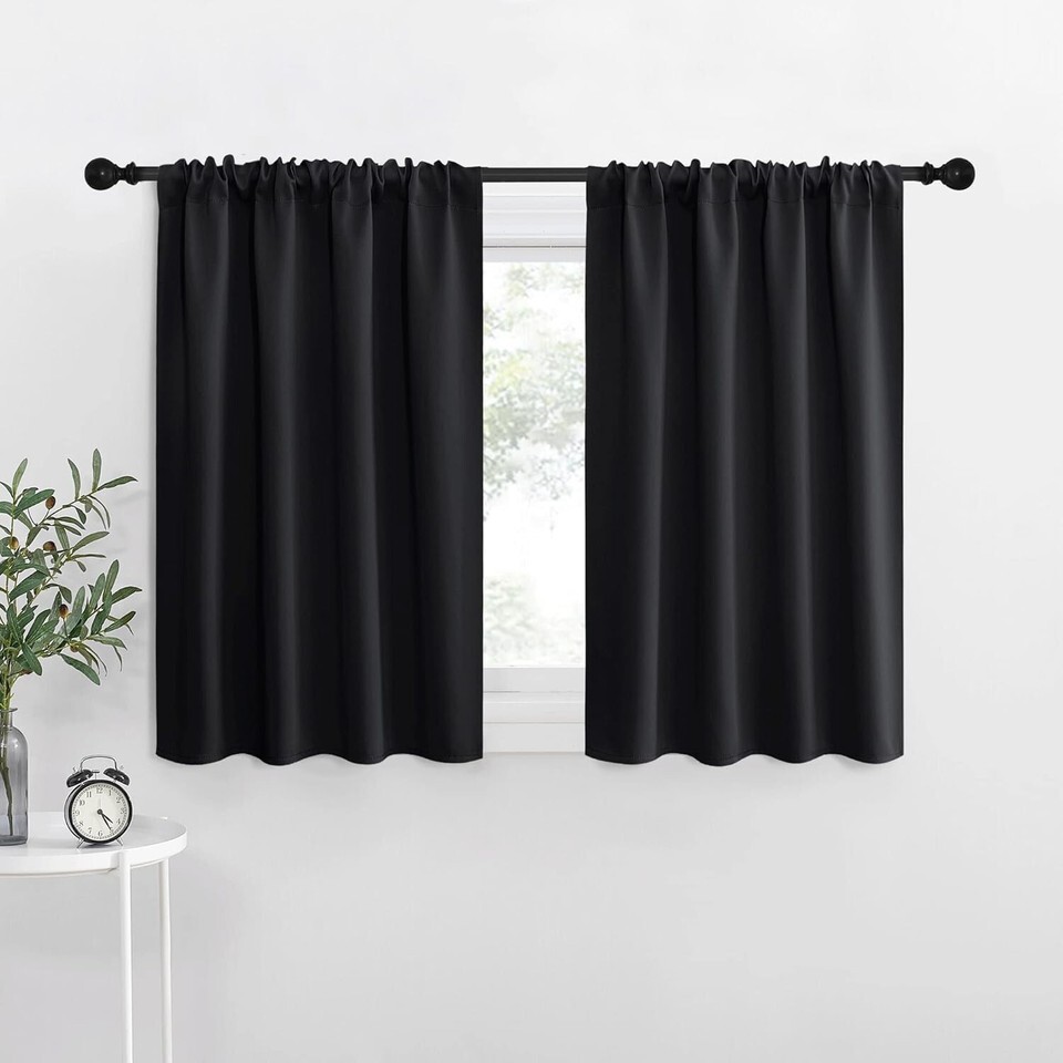 Black Thermal Window Drapes - 34" W x 30" L Blackout Panels for Ultimate Privacy
