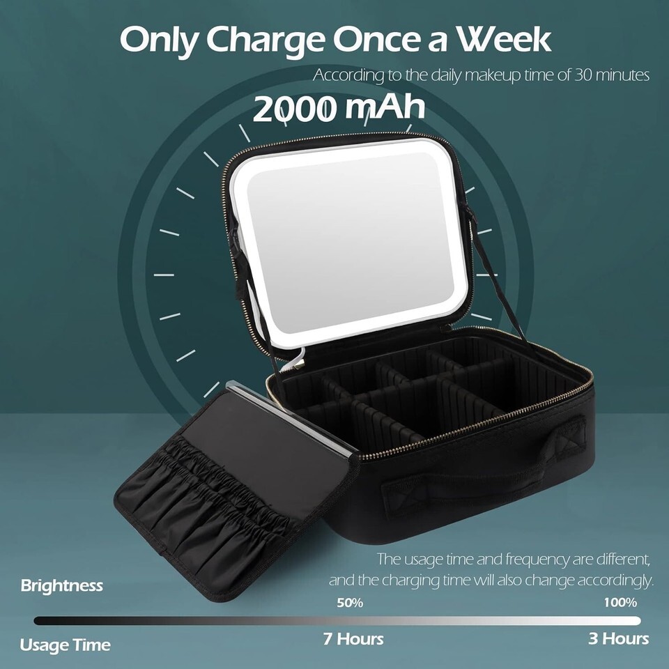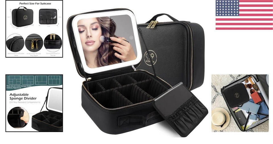 - Black Travel Makeup Train Case with 4K Mirror & LED Lights - Perfect for Artists