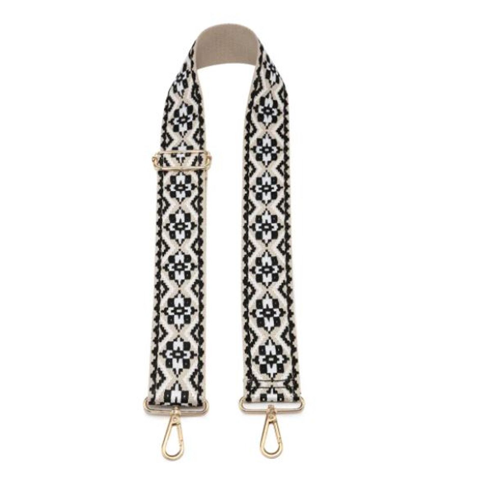 - Black White Tan Tribal Tapestry Woven Purse Guitar Crossbody Adjustable Strap
